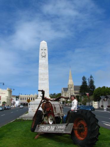 Blížili jsme se k moři, sílící vítr a projasněné nebe toho bylo neklamným důkazem. Protože rybářská bilance bývá v poměru jedna ztracená třpytka na dva pstruhy, museli jsme doplnit zásoby. Ryb jsou tu totiž mraky a třpytky na stromech nerostou. Zastavili jsme se proto ve městě Omaru, které místní obyvatelé vyslovují jako Ou´emaru a tady v Otagu a možná i jinde na NZ se jim zato pošklebují. Ou´emaru je totiž, na rozdíl od většiny NZ měst krásně prozdobené spoustou viktoriálnské architektury a láká turisty na SteamPunk – cože je taková ocelová známka panku. Mimo třpytky jsme tu koupili i luxusní podběrák s váhou v rukověti a metrem v síťce, takže když se losos uloví, taky se sám rovnou zváží a změří. Já v infocentru objevila překrásnou Paua Shell, což je místní královna škeblí, která duhovými barvami předčí i rajčí peří a protože tak nadšená rabářka, abych nosila v uších třpytky ještě nejsem, Jiřík moje omámení neunesl a pořídil mi ony uhrančivé Pauové ohringle. Nádhera!